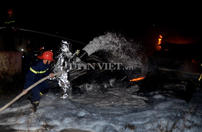 | Cảnh sát PCCC phun bọt khí dập lửa. |