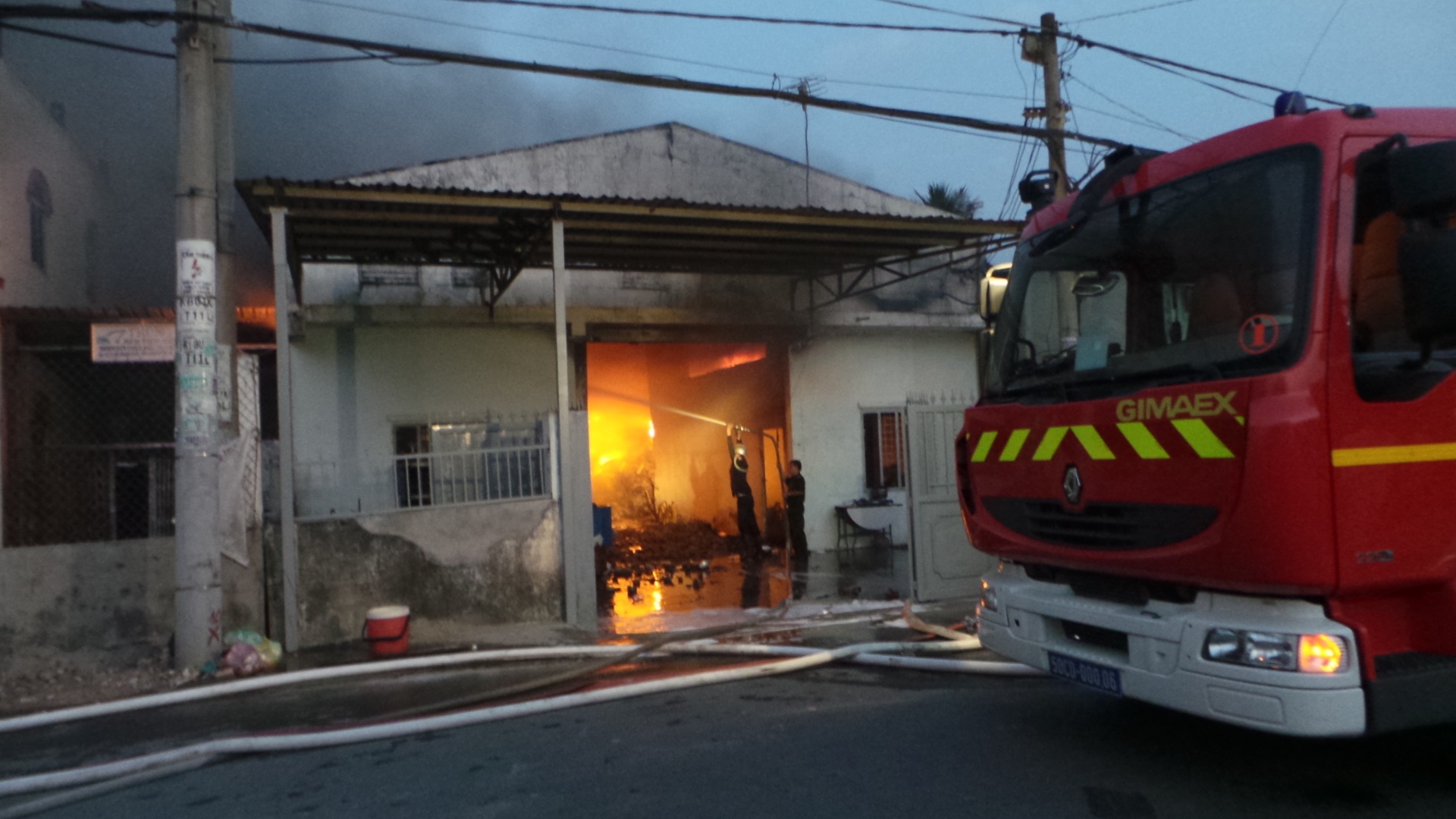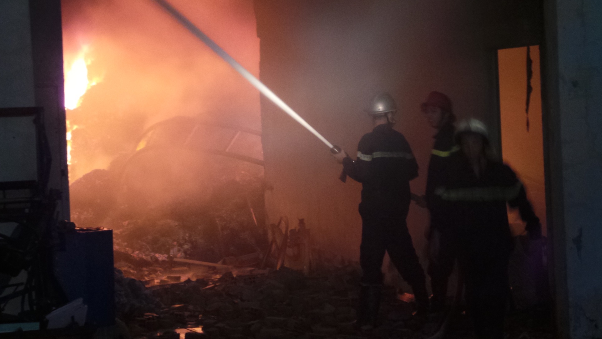 | Vào thời điểm xảy ra cháy, trong kho có 5 công nhân. May mắn là những người này đã kịp thoát ra ngoài. |