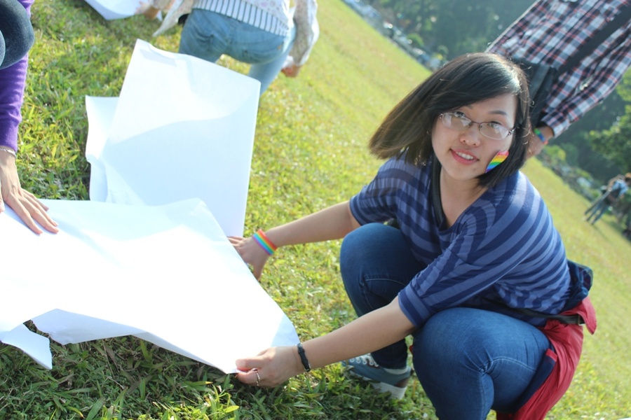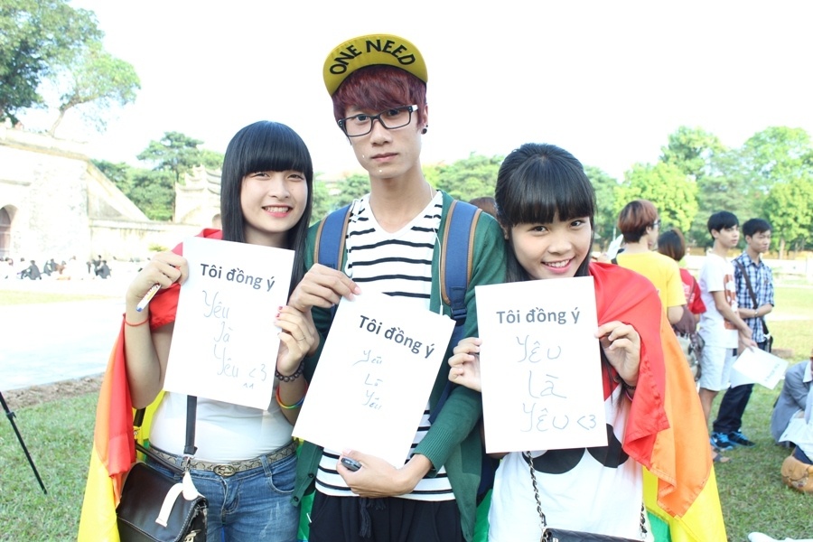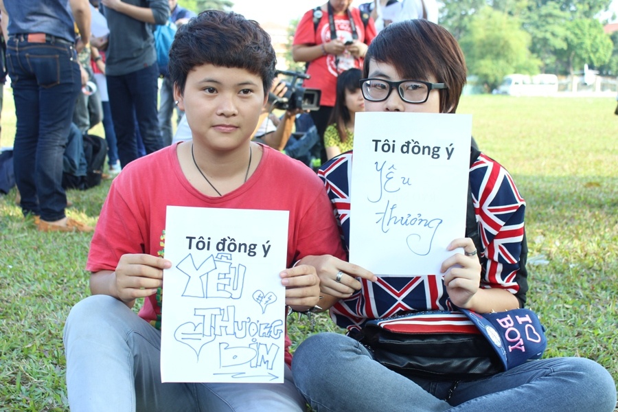 | Chiều qua (22/10), gần 100 bạn trẻ đồng tính, dị tính tham gia xếp chữ “Tôi đồng ý” tại Hoàng Thành Thăng Long. |