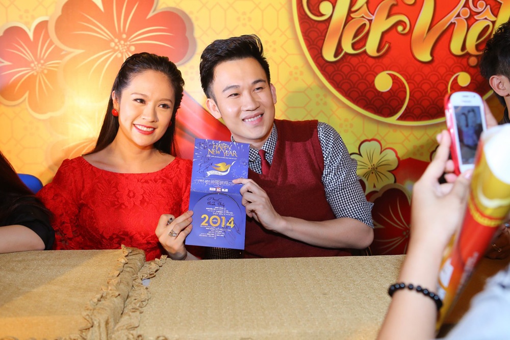 | Khá đông bạn trẻ đến rất sớm, xếp hàng để có cơ hội nhận được album quà tặng và nhận được chữ ký của các sao Việt. Minh Hằng hào hứng chia sẻ: “Một buổi ký tặng thật ý nghĩa để người hâm mộ có cơ hội nhận sản phẩm chất lượng và giao lưu cùng các anh, chị nghệ sĩ. Hy vọng mọi người sẽ chào đón và ủng hộ DVD Hương sắc Tết Việt lần này.” |