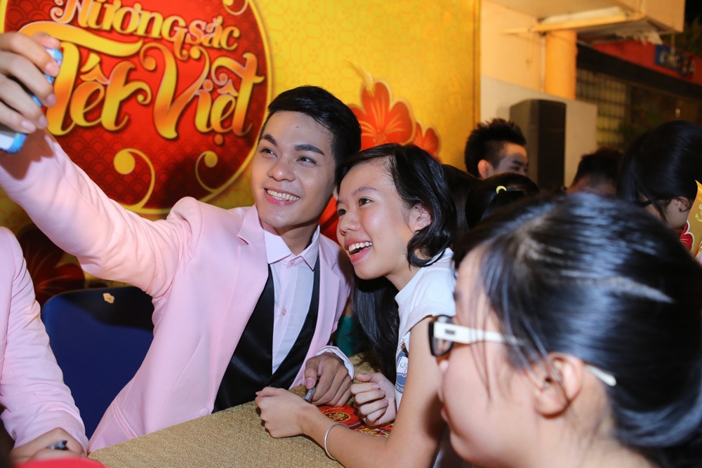 | Sơn Ngọc Minh chụp hình cùng fan. |