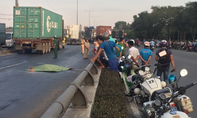 | Người đàn ông đi bộ băng ngang QL1, đoạn đổ dốc cầu vượt Linh Xuân, phường Linh Trung, quận Thủ Đức, TP HCM bị ô tô cán tử vong tại chỗ ngày 14/1/2016. |