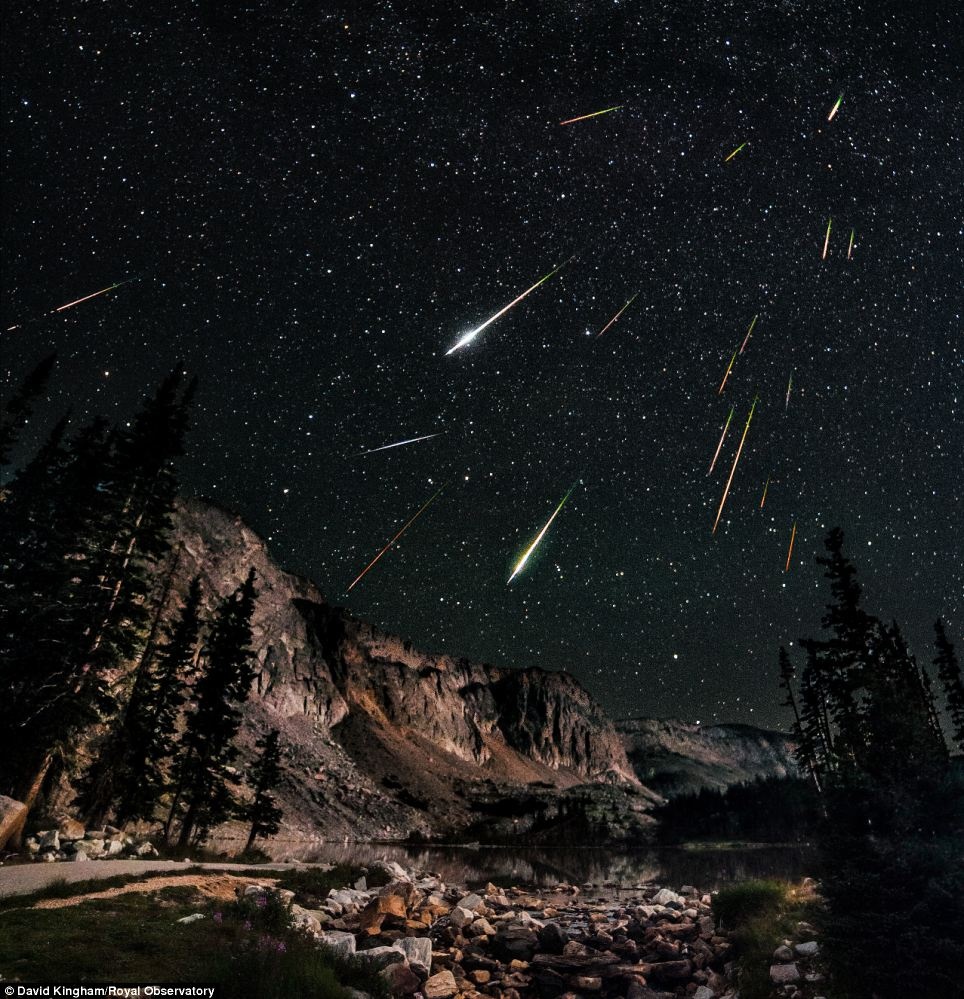 | Trận mưa sao băng Perseid phía trên một dãy núi tại Mỹ. |
