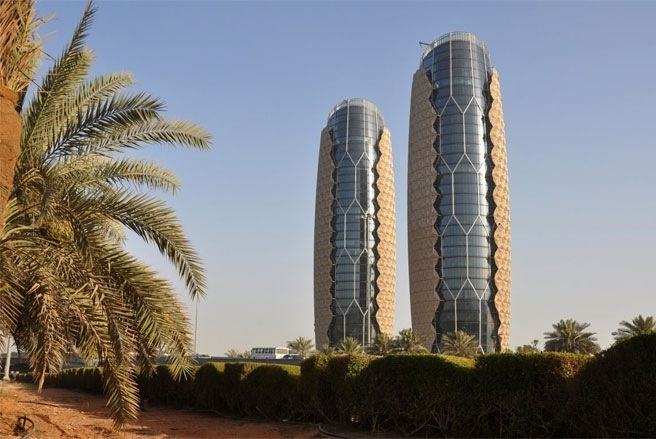 2. Al Bahr TowersCao ốc này nằm ở Abu Dhabi, mặt ngoài được phủ các tấm quang điện phản ứng với ánh sáng mặt trời. Khi mặt trời di chuyển, 2.000 tấm quang điện này đóng và mở để giảm 50% lượng nhiệt hấp thụ vào trong tòa nhà. |