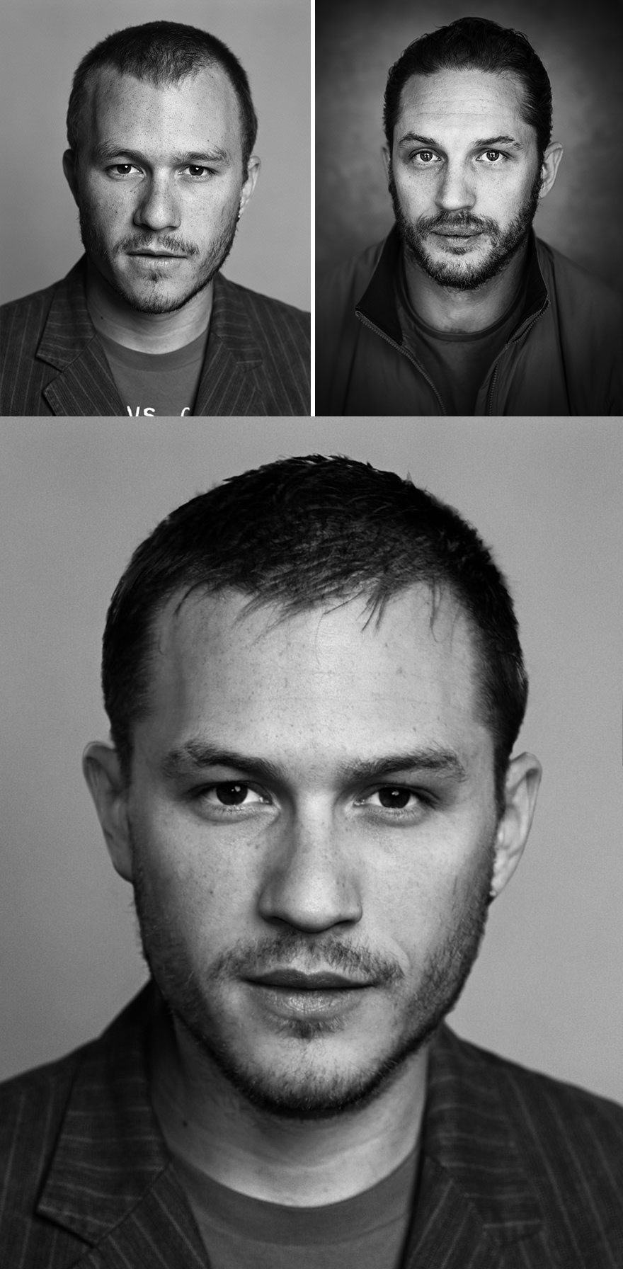Heath Ledger và Tom Hardy, hai tài tử sắm vai phản diện trong loạt phim Batman của Christopher Nolan, cùng nhau tạo ra một gương mặt đầy nam tính. |