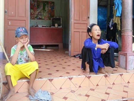 Ở xóm Xuân Tiến, hoàn cảnh của Nguyễn Tiến Quỳnh (lớp 5B) cũng rất đáng thương. Quỳnh không có bố, mẹ bị câm bẩm sinh, lại còn mới sinh em. Từ nhỏ đã phải nương nhờ bà ngoại năm nay 73 tuổi.