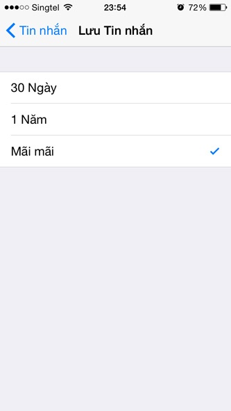 Việc lưu giữ tất cả tin nhắn (đặc biệt là các bức ảnh gửi trong quá trình chat) trên thực tế chẳng có ích lợi gì. Với iOS 8, bạn có thể thiết lập chế độ tự động xóa các tin nhắn đã đọc sau 1 tháng (thay vì thiết lập mặc định lưu giữ mãi mãi) trong Cài đặt > Tin nhắn > Lịch sử Tin nhắn, nhằm ngăn ngừa iMessage tiêu tốn quá nhiều dung lượng.