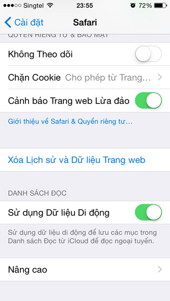 Đúng là sẽ hơi bất tiện cho bạn nếu xóa lịch sử trình duyệt khi vào các trang web thường xuyên truy cập, nhưng chắc chắn bạn sẽ phải ngạc nhiên vì tổng dung lượng mà lịch sử trình duyệt chiếm dụng khi vào Cài đặt > Safari và nhấp chọn Xóa lịch sử và dữ liệu trang web.