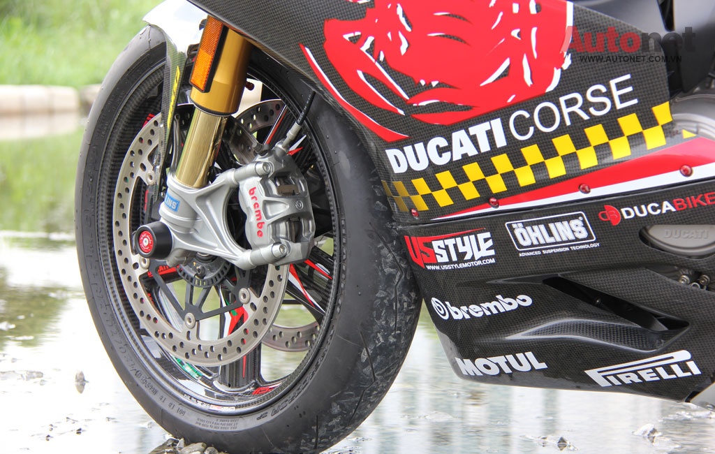| Ngoài ra, 1199 Panigale S Tricolore còn được trang bị thêm gói phụ kiện đi kèm như; Ducabike, CNC Racing, mâm Rotobox full carbon, pô Termignoni độ full, Option Brembo Special part… Đại diện của US style team cho biết, gói độ này có giá khoảng hơn 200 triệu đồng. |