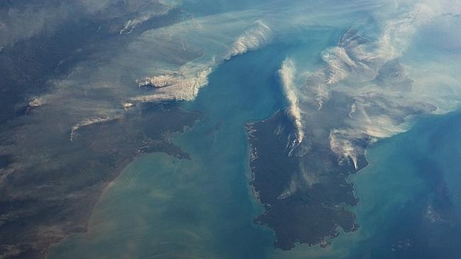 | Khói bốc lên từ những đám cháy rừng ở thành phố cảng Darwin ở phía bắc Australia hôm 5/8. Các phi hành gia trên Trạm Không gian Quốc tế chứng kiến cảnh tượng này và chụp. Ảnh: NASA |