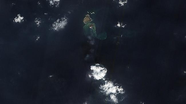 | Một hòn đảo nhỏ xuất hiện ngoài khơi Nhật Bản vào cuối tháng 11. Các chuyên gia nhận định nó sẽ tồn tại vài năm. Ảnh: NASA |
