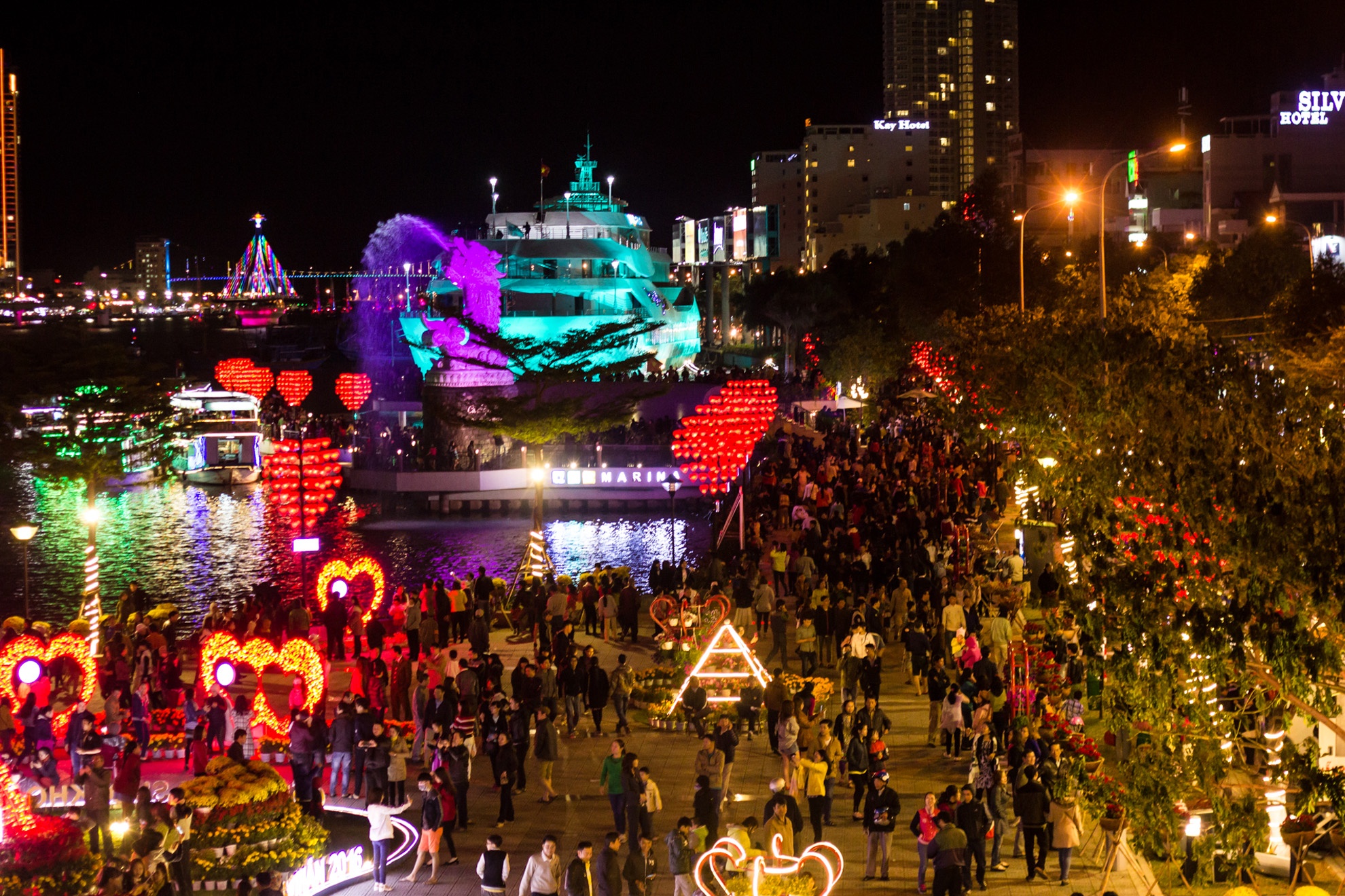 | Khán giả đến cổ vũ cho các đội thuyền từ hai bờ sông Hàn. Ảnh: Ngọc Minh. |