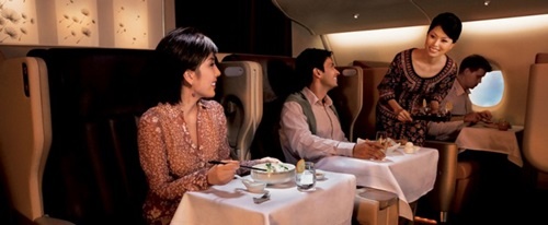 Với giá khứ hồi là 8.039 USD từ Los Angeles tới, hạng thương gia của hãng hàng không Singapore xếp vị trí số 1 trên thế giới. Theo SeatGuru, ghế ngồi rộng tới 86cm trên khoang thương gia của máy bay Airbus A380-800 là loại lớn nhất thế giới. Với cách bài trí 1-2-1, lối đi trên khoang hạng thương gia đem lại sự thoải mái tối đa cho hành khách. Bàn ăn tại khoang này là hiệu Givenchy và hành khách cũng có thể đặt bữa trực tuyến với dịch vụ đặc biệt “Book the Cook”.