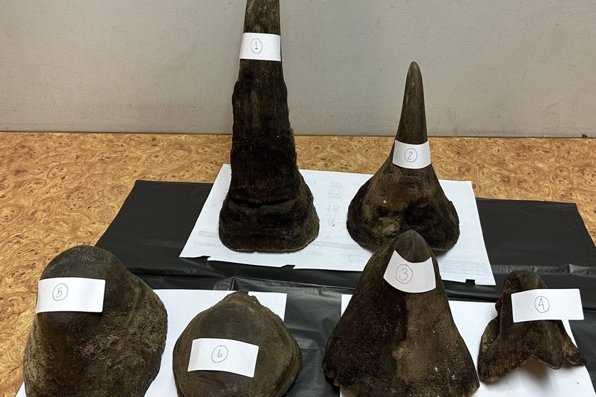 Khám xét hành lý, lực lượng chức năng thu giữ 6 khúc sừng tê giác được chia thành 3 gói, tổng trọng lượng 11,75 kg. Ngoài ra, cảnh sát còn phát hiện 3 mảnh da động vật nặng khoảng 12 kg được sử dụng để che giấu số sừng, cùng một chiếc điện thoại bị nghi liên quan đến hành vi phạm tội.