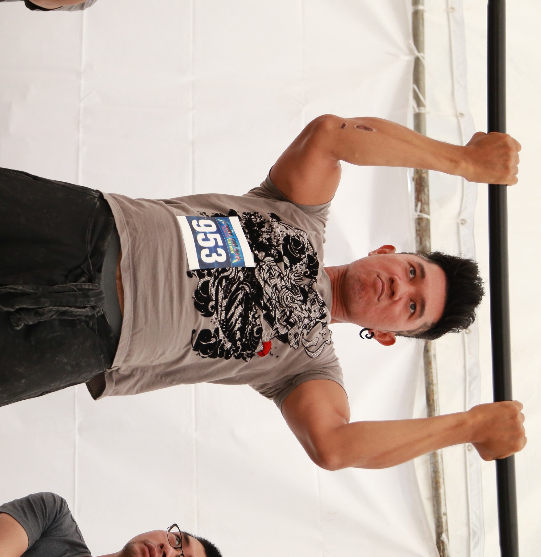 | Tham gia cuộc thi này, đối thủ của người đàn ông gần 70 tuổi là những chàng trai cơ bắp. Hình ảnh thí sinh Đào Huy Đăng, 26 tuổi, làm việc tại Tây Nguyên. |