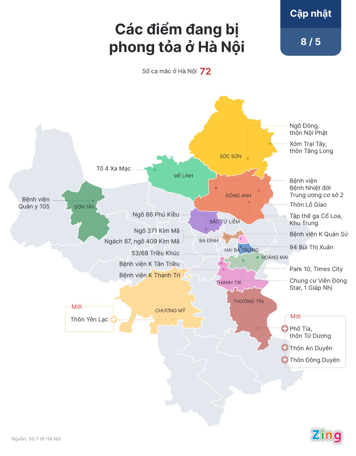 Với việc liên tiếp ghi nhận chùm ca bệnh tại Thường Tín, Sóc Sơn, Đông Anh, số điểm bị phong tỏa tại Hà Nội đã lên hơn 20. Có nơi phong tỏa hàng nghìn người.