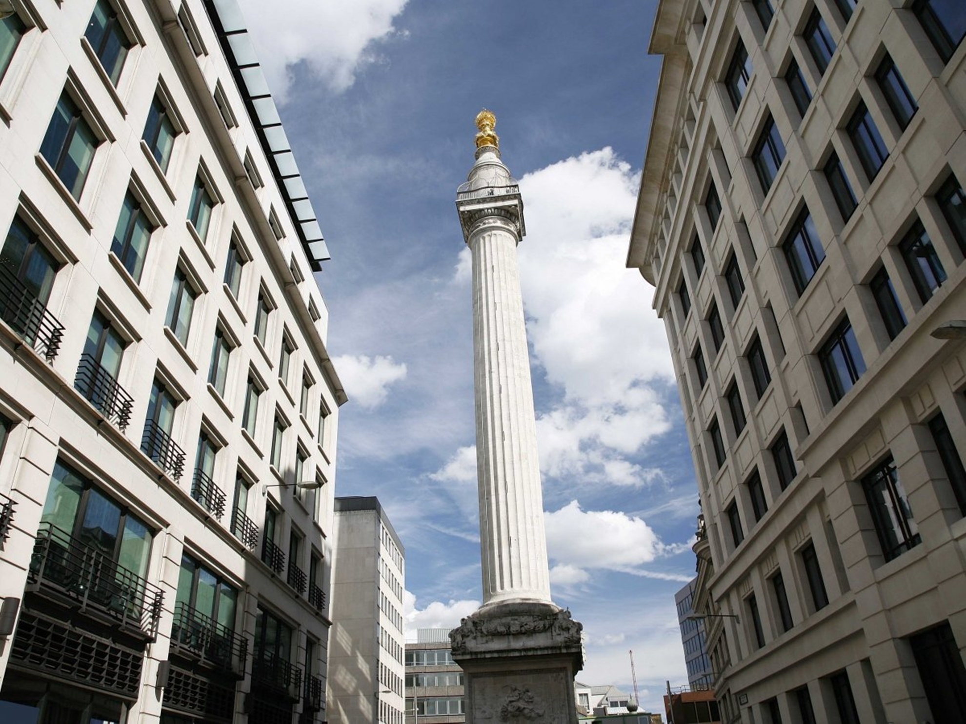 Monument là đài tưởng niệm của vụ cháy Great Fire. Nó được xây ngay trên nền đất của tiệm bánh, nơi đầu tiên ngọn lửa bùng phát vào đêm 2/9/1666. |