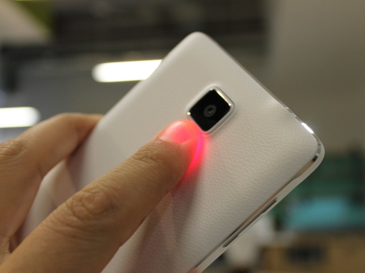 Galaxy Note 4 sở hữu cảm biến đo nhịp tim ở mặt sau máy. Nó đưa ra thống kê khi bạn đặt ngón tay vào đó. |