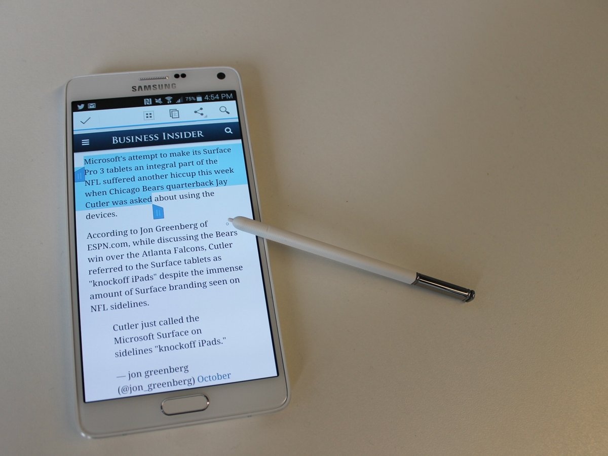 Galaxy Note 4 đi kèm bút cảm ứng S Pen để ghi chú tiện hơn |