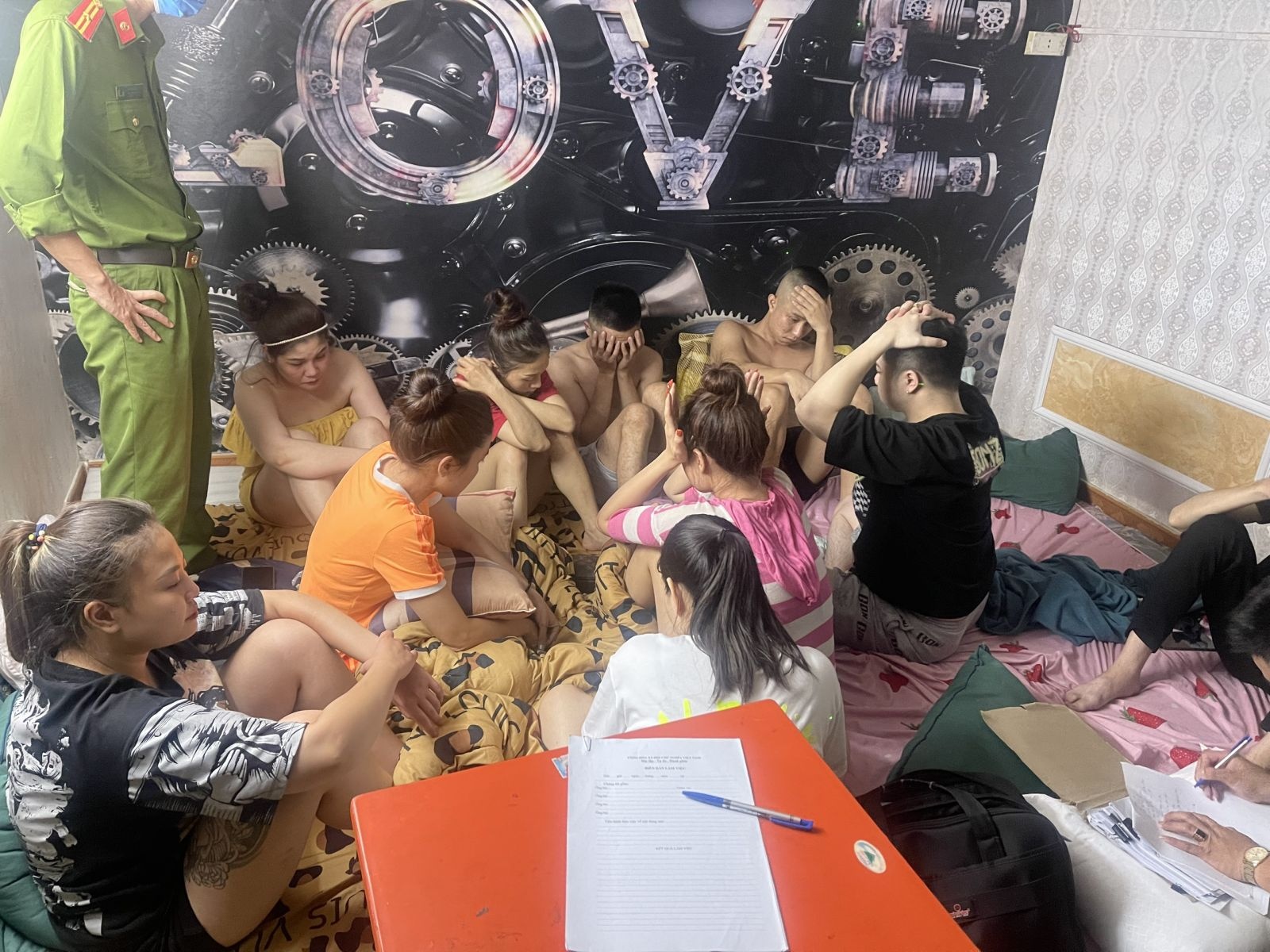 Thời điểm kiểm tra, lực lượng chức năng phát hiện 15 người có dấu hiệu sử dụng trái phép chất ma túy tại phòng ngủ tầng 2. Kết quả kiểm tra nhanh cho thấy 13 người trong nhóm dương tính với chất cấm.