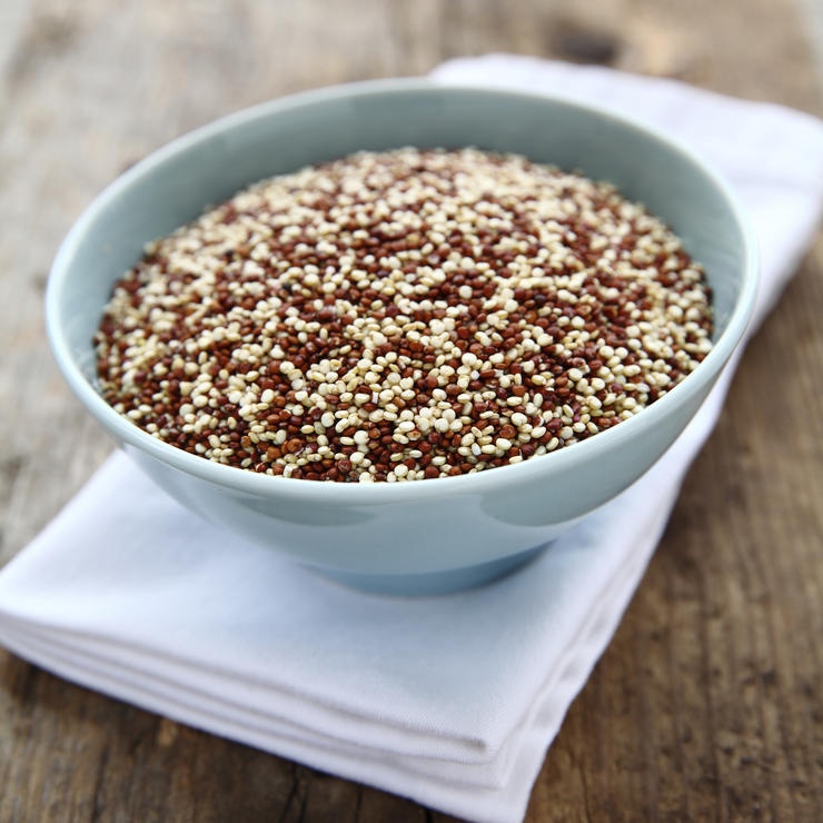 Quinoa là một nguồn tuyệt vời của protein và chất xơ, nó chứa tất cả chín axit amin thiết yếu có lợi cho sức khỏe. Bởi vậy, thực phẩm này vừa giúp bạn kiểm soát cơn đói, vừa kết hợp tốt với một số loại thực phẩm có hàm lượng calo cao. Sử dụng quinoa cho bữa ăn sáng hoặc ăn tối sẽ giúp bạn tránh được việc đưa quá nhiều carbohydrates vào cơ thể.