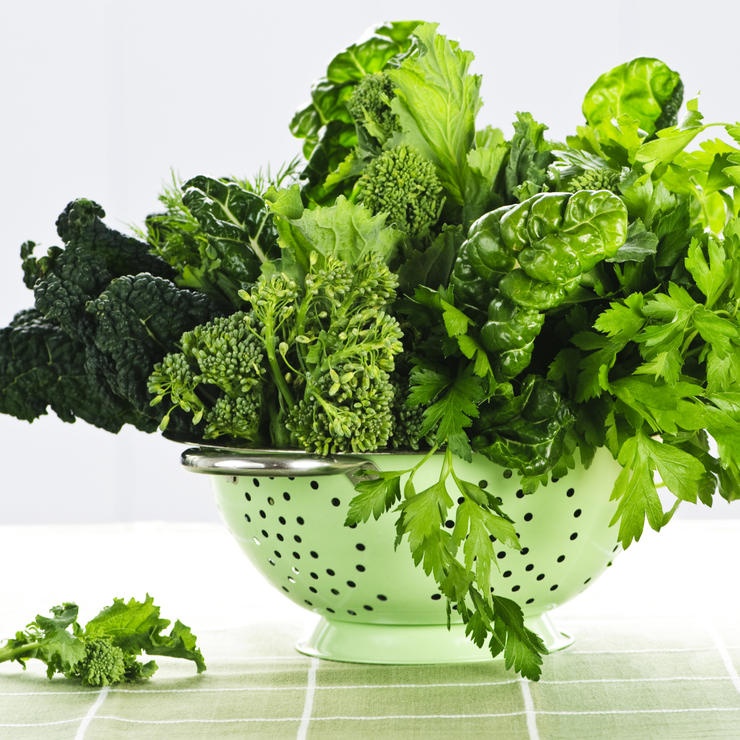 Các loại rau lá xanh như cải xoăn, rau bina, củ cải Thụy Sĩ... thường ít calo nhưng chứa nhiều chất xơ và có hàm lượng chất béo lành mạnh, rất quan trọng cho việc giảm cân. Theo chuyên gia Rachel, thêm rau lá xanh vào bữa ăn hàng ngày sẽ cung cấp đủ các chất dinh dưỡng mà lượng calo dung nạp lại ít, do đó, bạn có thể ăn nhiều mà không tăng cân. Bạn có thể thêm chúng trong các món súp, salad, các món hầm hoặc một món ăn chính.