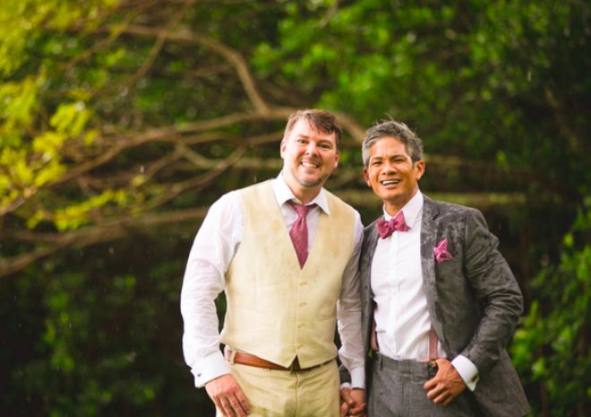 | Cặp đôi đồng tính rỏ ra vô cùng hạnh phúc trong ngày trọng đại của đời mình. |
