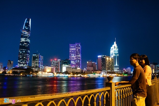 Bến Bạch Đằng là một trong những địa điểm hẹn hò lãng mạn của Sài Gòn. Có ba lựa chọn để bạn cảm nhận vẻ đẹp của ơi đây là ngồi quán cà phê, dùng bữa trên nhà hàng và ngồi ghế đá của công viên. Ảnh: Tàu Sài Gòn. |