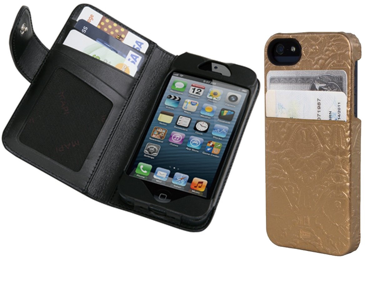 Nếu túi quần không đủ chỗ cho cả iPhone và một chiếc ví, bạn hãy thử loại phụ kiện 2 trong 1 nói trên. Vỏ case bằng da của Myra (bên trái) có giá 60 USD còn vỏ vàng của Hex có giá 40 USD.