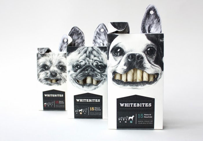 | 9. Whitebites: Ngay cả những sản phẩm thức ăn dành cho chó cũng được đầu tư bao gói hết sức công phu. Chưa biết những chú cún cưng có thích sản phẩm này hay không, song Whitebites đã rất biết cách để hấp dẫn chủ của chúng. |