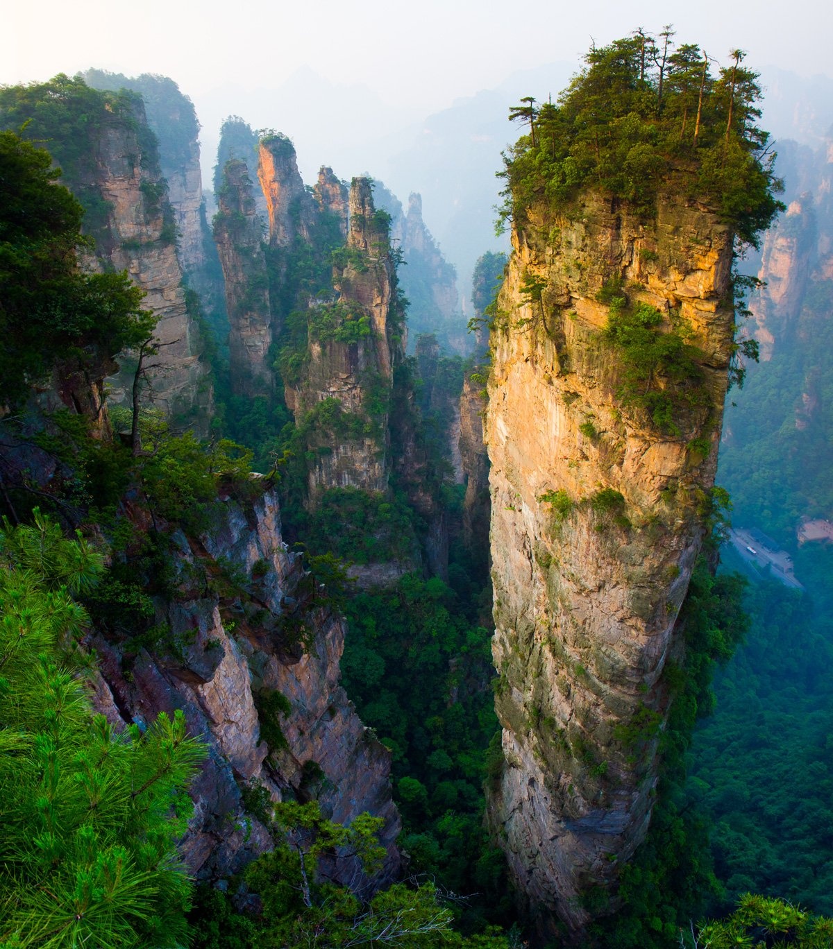 | Các ngọn núi đá vôi chọc trời ở công viên quốc gia Zhangjiajie, Trung Quốc được hình thành sau quá trình xói mòn kéo dài hàng triệu năm. Ảnh: Getty Images |
