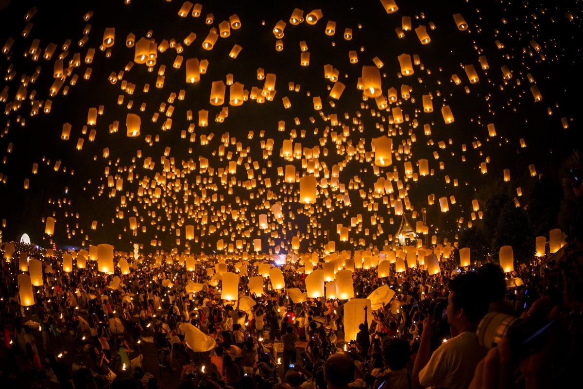 | Hàng nghìn đèn lồng được thả trong lễ hội Loi Krathong ở Thái Lan. Lễ hội này diễn ra khi trăng tròn trong tháng 11. Ảnh: Getty Images |