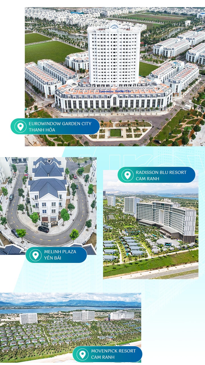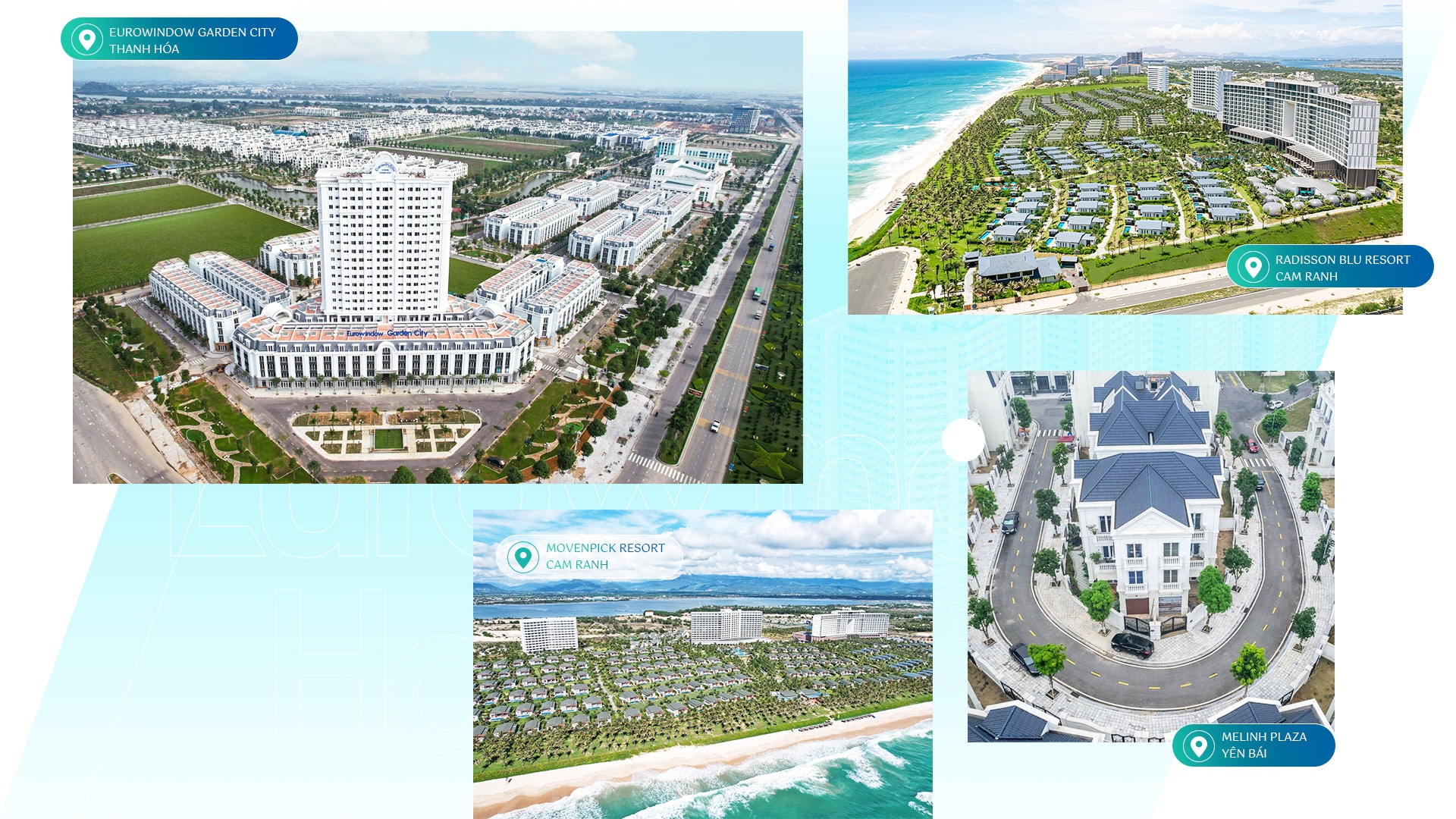Không chỉ tại Hà Nội, Eurowindow Holding tiếp tục khai phá, đánh thức tiềm năng các vùng đất, thay đổi diện mạo địa phương, nâng tầm chất lượng sống cho người dân nhiều tỉnh thành. Các dự án như Melinh Plaza Yên Bái, Eurowindow Green Park (Yên Bái), Eurowindow Garden City, Eurowindow Light City (Thanh Hóa), Eurowindow Sport City (Nghệ An), Eurowindow Grand City (Quảng Bình)… đều là những khu đô thị đầy đủ tiện ích với không gian sống chất lượng.
