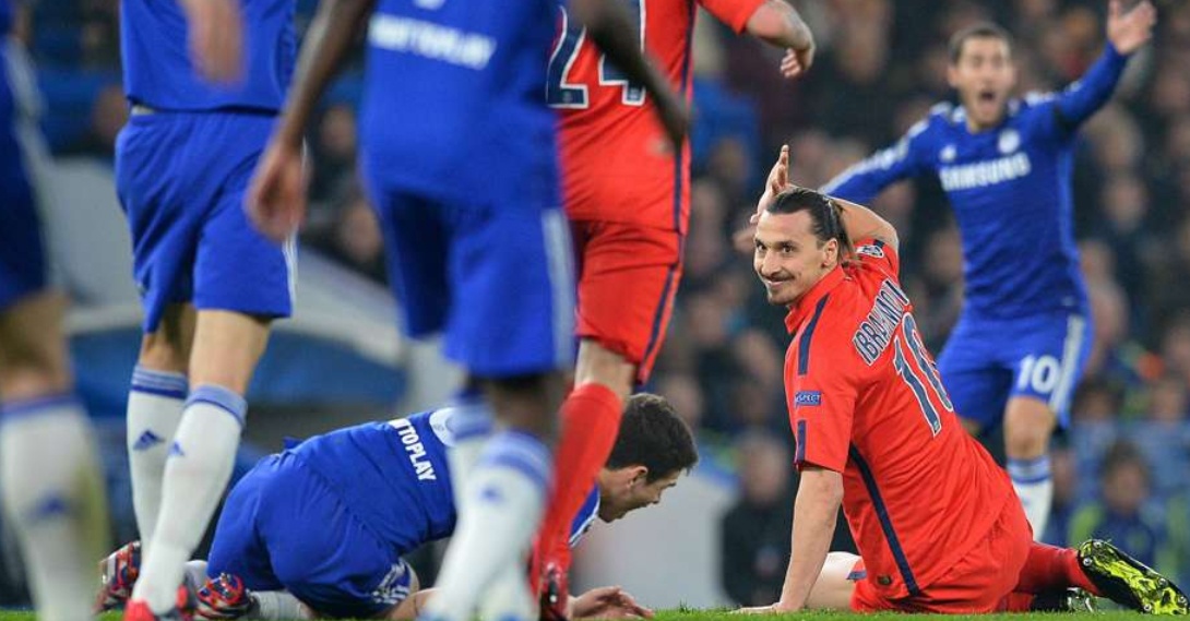 | Ibra sau tình huống phạm lỗi với Oscar của Chelsea và nhận thẻ đỏ. Ảnh: Goal. |