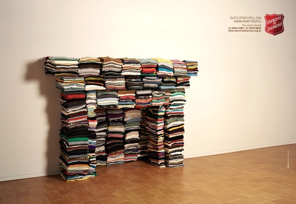 12. Những chiếc áo ấm được xếp thành hình lò sưởi trong quảng cáo của Salvation Army, kêu gọi mọi người tham gia quyên góp từ thiện.
