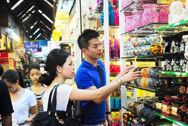 Bangkok (Thái Lan)Silom và Surawong là những khu vực mua sắm phổ biến nhất ở thủ đô của Thái Lan với vô số cửa hàng tơ tằm giá rẻ, quần áo thời trang. Trong khi đó, đường Sukhumvit lại là nơi tập trung nhiều cửa hàng đồ da. Khách du lịch cũng đừng quên chợ cuối tuần Chatuchak với 8.000 gian hàng, giá cả bình dân. Ngoài ra, Bangkok MBKCentre cũng là một thiên đường mua sắm của Thái Lan . |