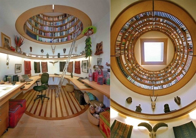 | Phòng làm việc được thiết kế rất độc đáo với cả "kho tri thức" nằm trên đầu bạn. |