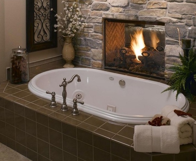 | Bồn tắm nằm bên cạnh lò sưởi đem đến cảm giác đầy mới mẻ và ấm áp. |