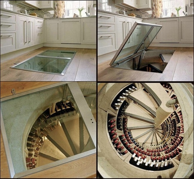 | Nằm trong phòng bếp, dưới cánh cửa kính là cả một hầm rượu. |