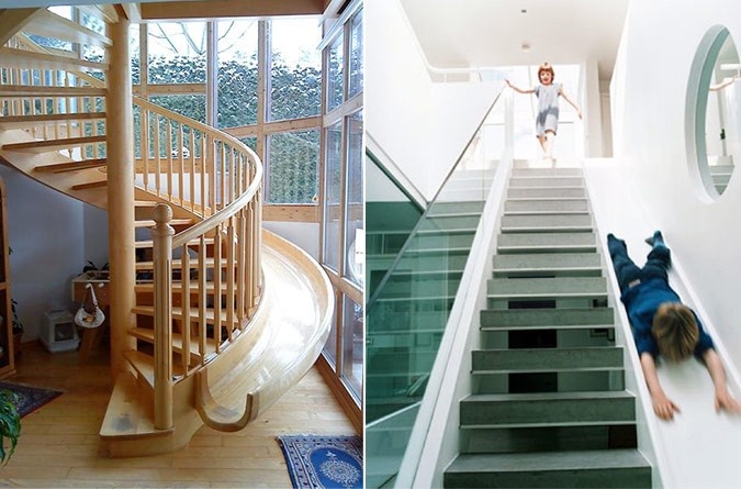 | Những đứa trẻ chắc chắn sẽ thích mê kiểu cầu thang gắn thêm đường trượt này. |