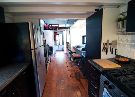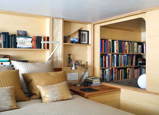 Có diện tích 22 m2, căn hộ ở New York (Mỹ) bao gồm 1 phòng ngủ, 1 bếp, 1 phòng khách, 1 thư viện nhỏ, rất nhiều nơi để đồ và cả một chiếc máy giặt được giấu đi khéo léo.