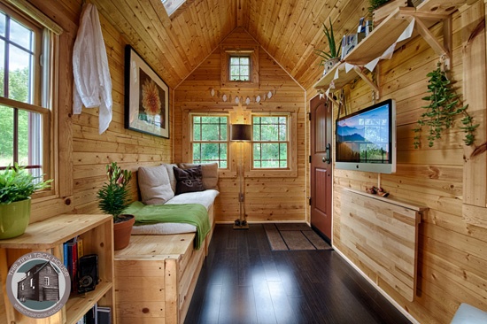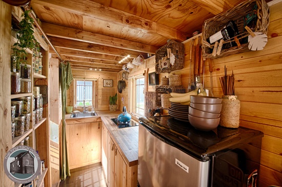 Diện tích căn nhà này là 37 m2, được chia làm hai tầng với đầy đủ tiện nghi. Tầng bên dưới có một chiếc giường lớn, bếp, tủ lạnh và những chiếc tủ tiện lợi còn tầng trên có phòng tắm và chiếc giường ngủ thứ hai.