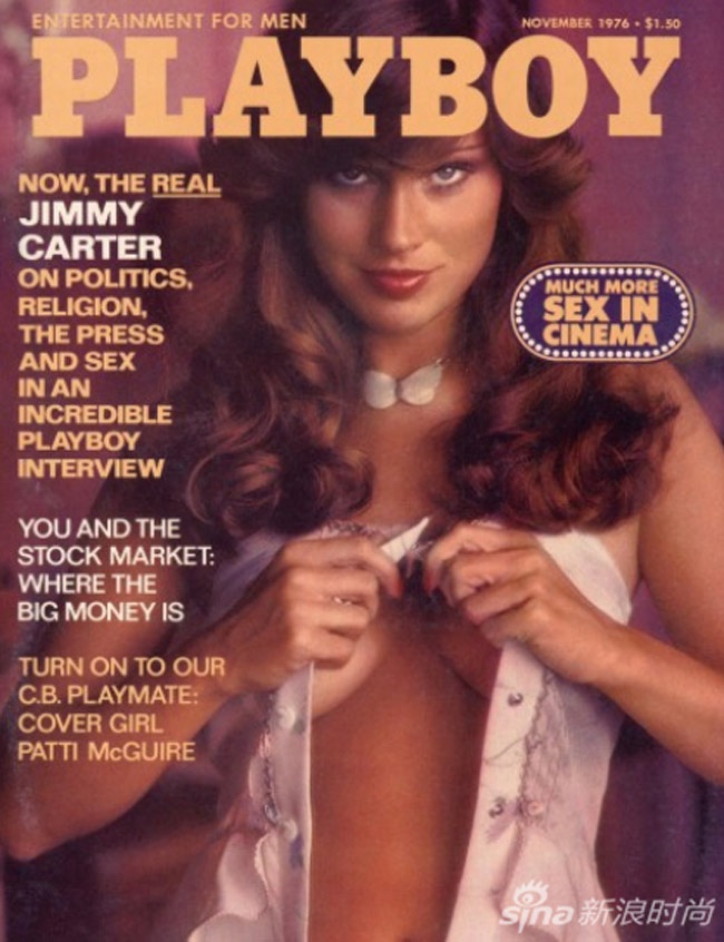 | Người đẹp Patti McGuire với mái tóc xoăn bồng bềnh, ánh nhìn ẩn chứa ma lực và cách tạo dáng quyến rũ trên bìa tạp chí năm 1976. |