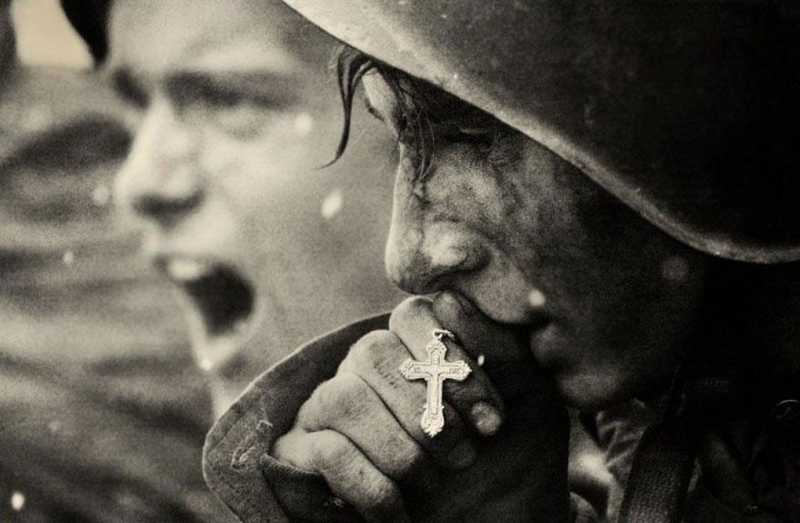 | Một binh sĩ người Nga chơi cây đàn piano bỏ hoang ở Chechnya năm 1994. Ảnh: drugoi.livejournal.com |