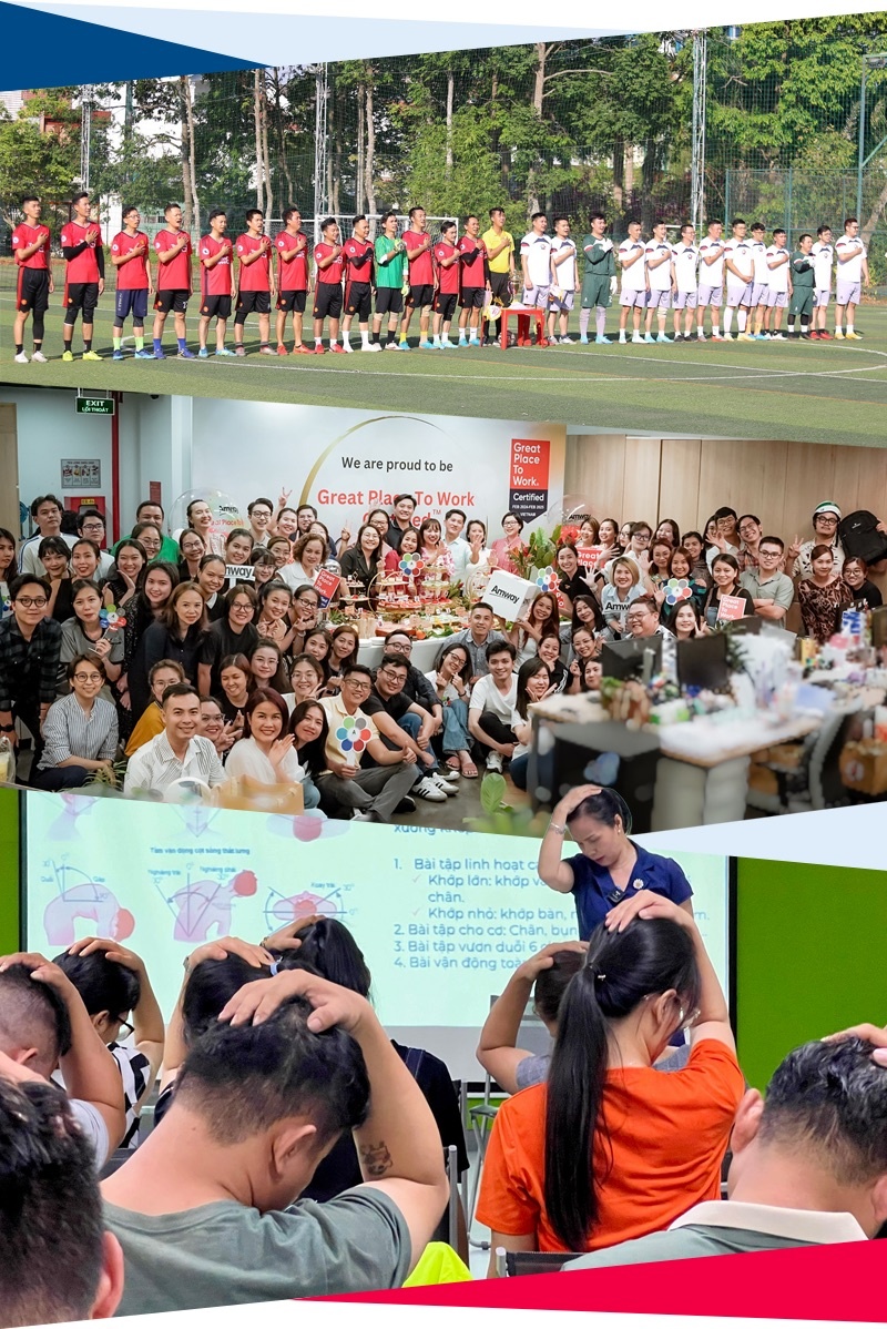 Amway vừa là nơi làm việc, vừa là nơi mọi người cùng nhau chăm sóc sức khỏe. Các câu lạc bộ thể thao như bóng đá, cầu lông, fitness, yoga đã thu hút sự tham gia của rất nhiều nhân viên, tạo nên bầu không khí sôi động và tích cực, mang đến cơ hội gắn kết, nâng cao sức khỏe, hướng tới một đời sống khỏe mạnh về thể chất và tinh thần. Sự gắn kết này chính là động lực để mỗi cá nhân cống hiến hết mình cho công việc.