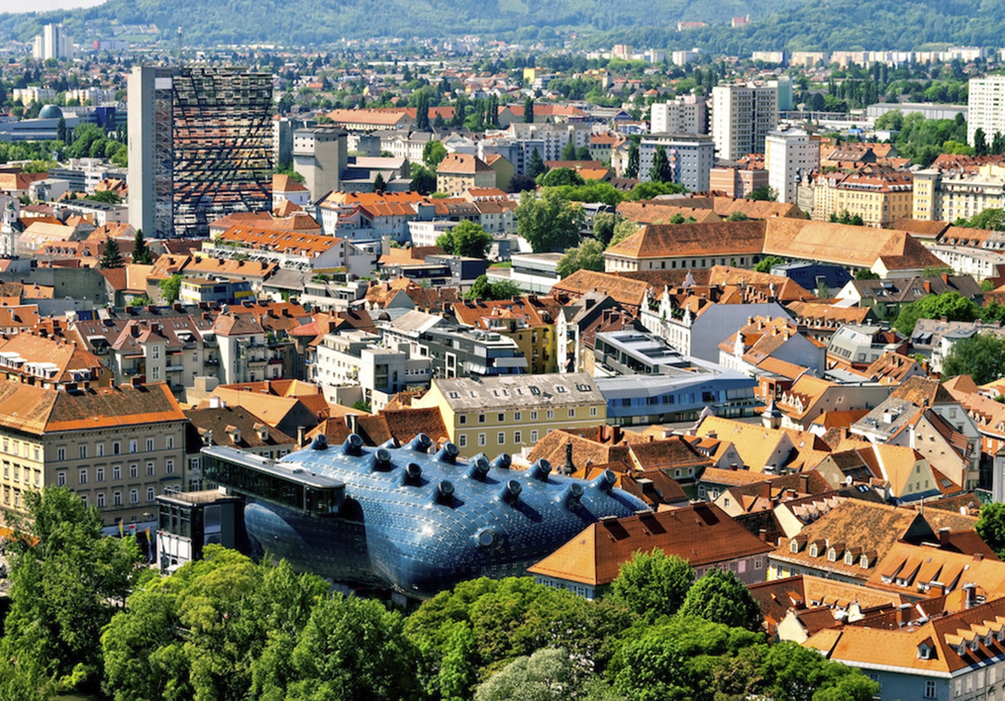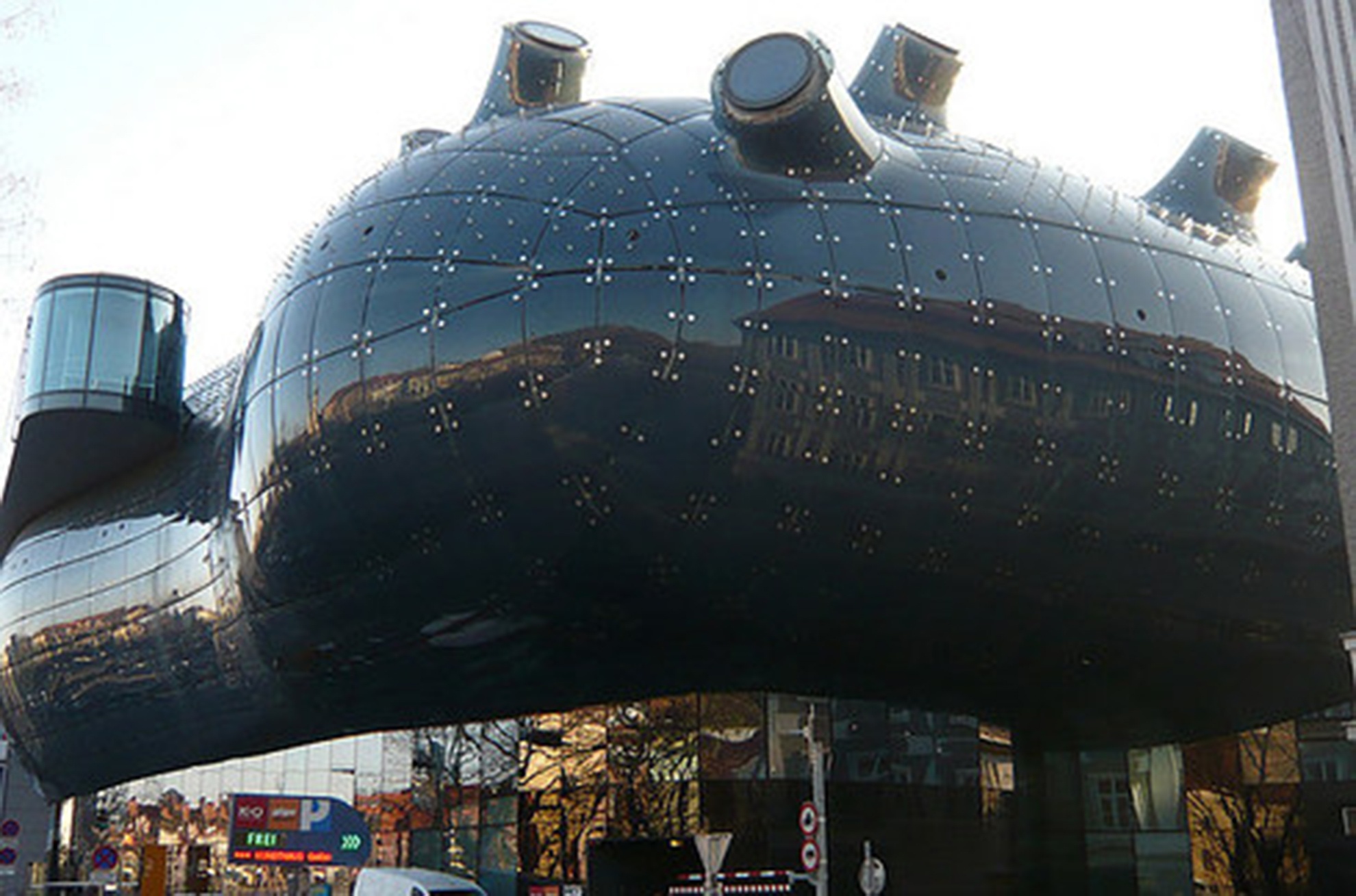16. Kunsthaus, Graz, ÁoKunsthaus, có nghĩa là bảo tàng nghệ thuật, tại thành phố Graz, Áo, còn được gọi là “Vật thể ngoài hành tinh” bởi thiết kế kỳ quặc của nó.