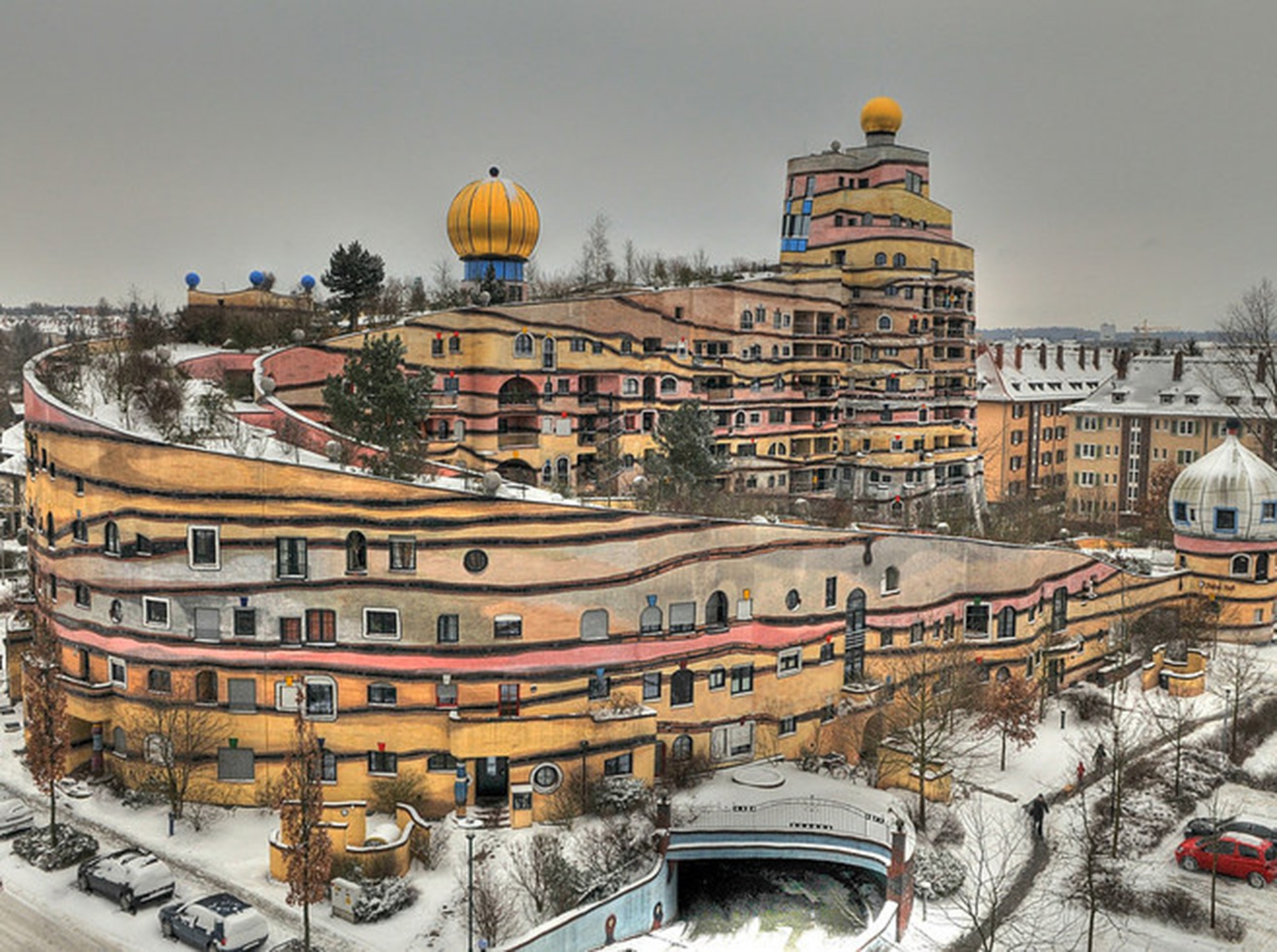 Được thiết kế bởi kiến trúc sư Friedensreich Hundertwasser, nhà máy này là trung tâm xử lý và tái chế rác, tạo nhiệt và nước nóng. |