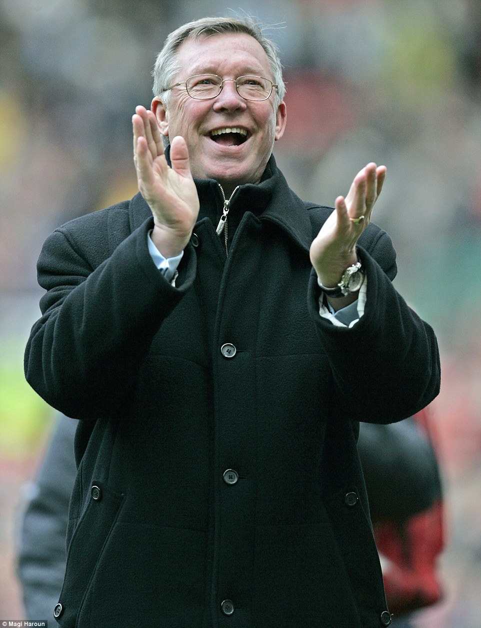 Sir Alex vỗ tay ăn mừng chiến thắng của M.U trước Arsenal vào tháng 4/2006.