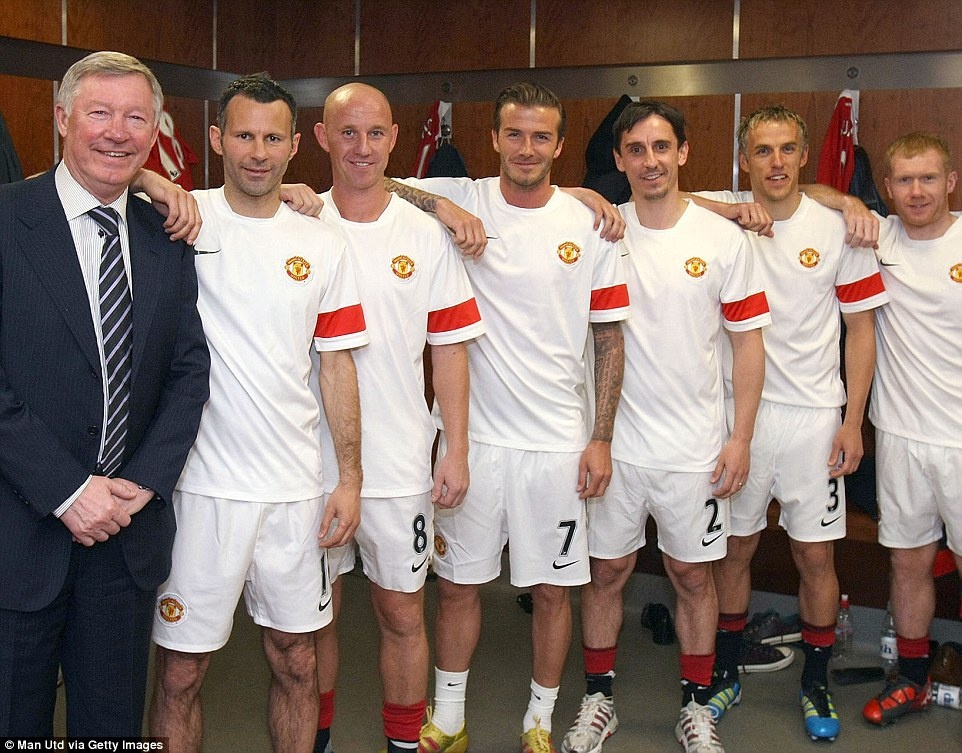 Sir Alex chụp ảnh lưu niệm với Thế hệ vàng 92 năm 2011 cùng Ryan Giggs, Nicky Butt, David Beckham, Gary Neville, Phil Neville và Paul Scholes.