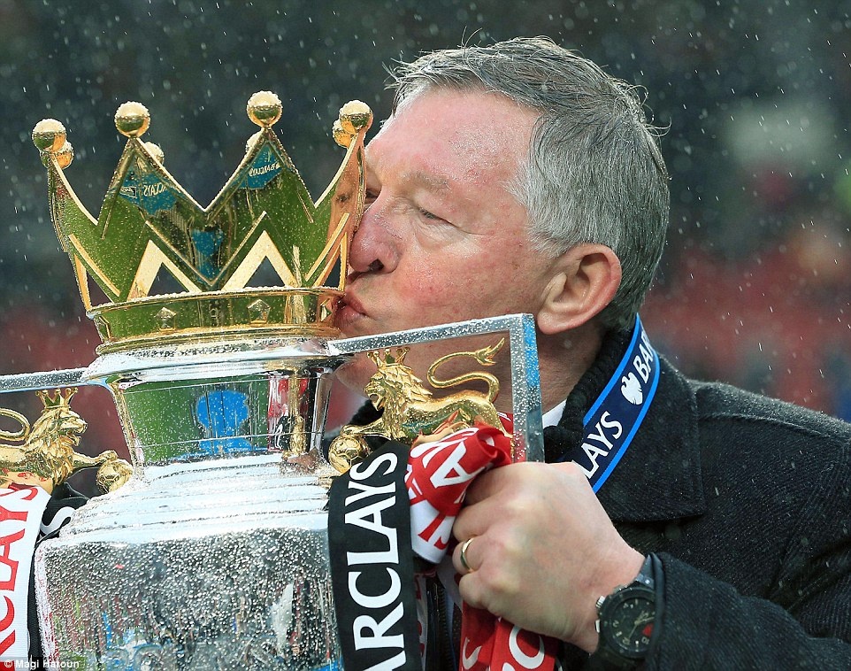 Sir Alex hôn danh hiệu Premier League cuối cùng trong sự nghiệp cầm quân tại Old Trafford sau khi M.U đánh bại Swansea 2-1 vào tháng 5/2013.
